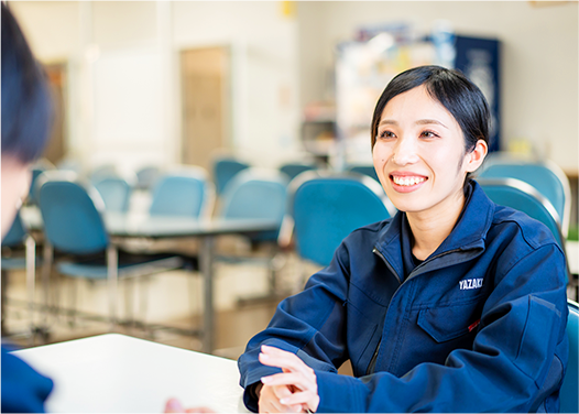 ヤザキの魅力は、同じ工場で働く人たちの顔が大体わかる「程よい規模感」と、何より社員みんなの「人の良さ」。心地良い環境こそ、長く働き続けられる秘訣だと思います。